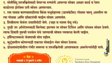एरंडोल येथे मोफत मोतीबिंदू शस्त्रक्रिया शिबिराचे आयोजन.